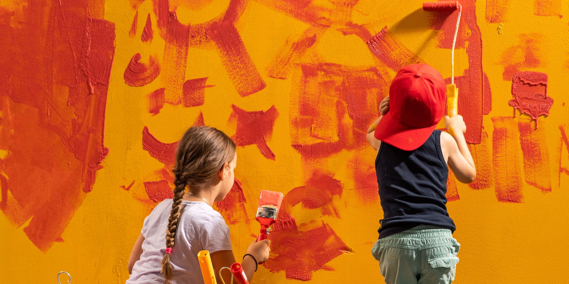 „Wir haben die Farbe im Schrank gefunden!“, fügte Noah hinzu. „Wir wollten dekorieren!“
