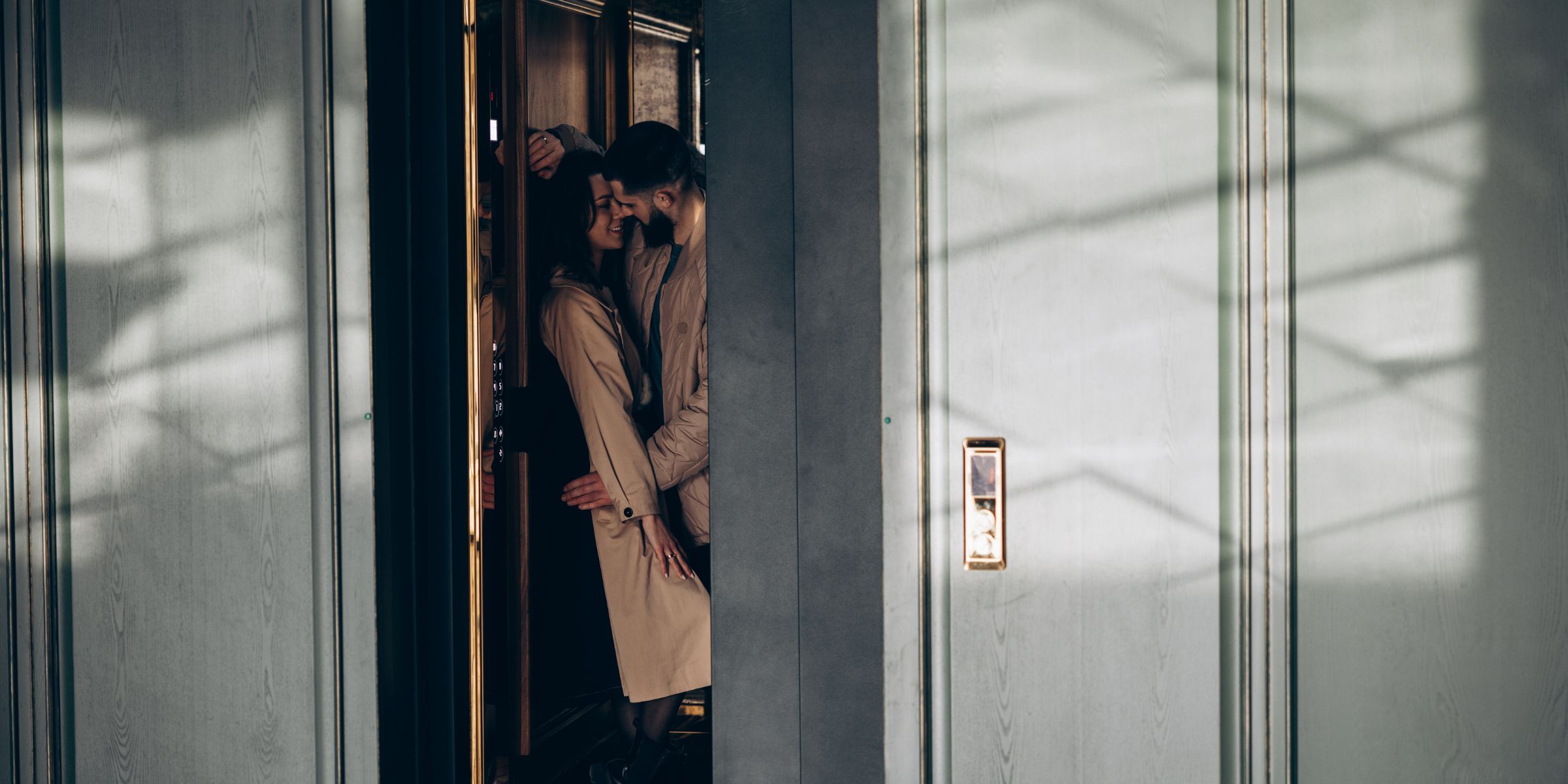Sie lachten, als sie aus dem Aufzug in unserem Gebäude stiegen.