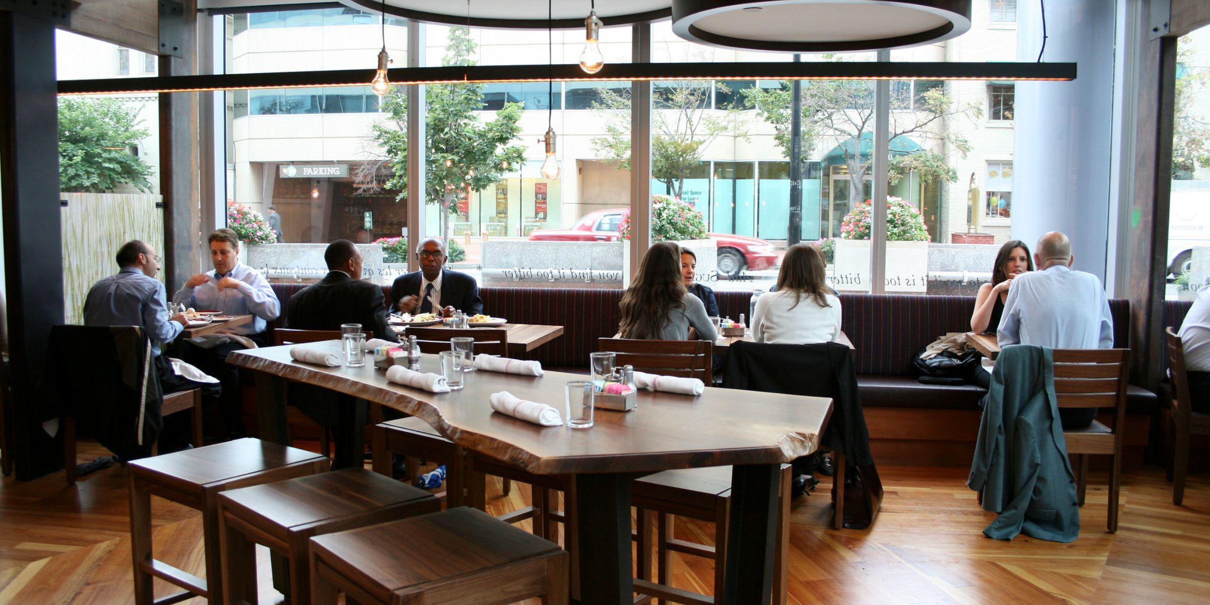 Ein Tisch in der Nähe wurde still.