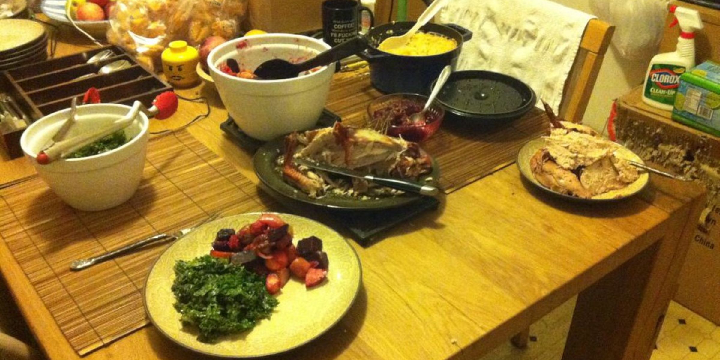 Beim Abendessen räumte sie ihren Teller ab und wischte dann sorgfältig ihren Platz am Tisch.