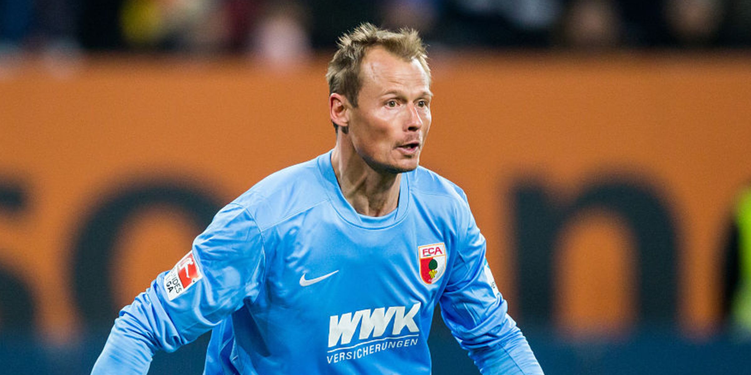 Alexander Manninger posiert während der Mannschaftspräsentation des FC Augsburg in der SGL Arena am 16. Juli 2014 in Augsburg. | Quelle: Getty Images